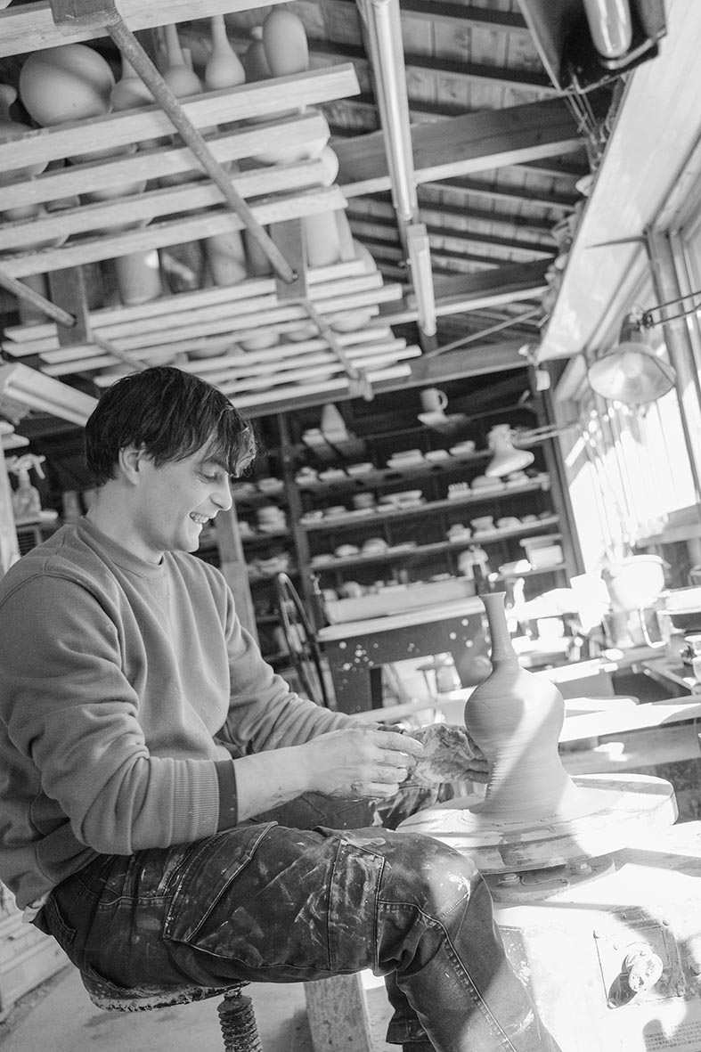 「結婚して、陶芸の道を志すと決めたとき、すでにお父さん(哲彰さん)は入院していましたので、作品を作っては持っていってお父さんに見てもらいアドバイスをもらいました。日本語がわからない僕に、妻が翻訳してお父さんの言葉を伝えてくれました。お父さんの陶芸家の友人にも指導を受けました。お父さんはいつも「大丈夫、大丈夫」と励ましてくれました」(ヴァン・ダーレン